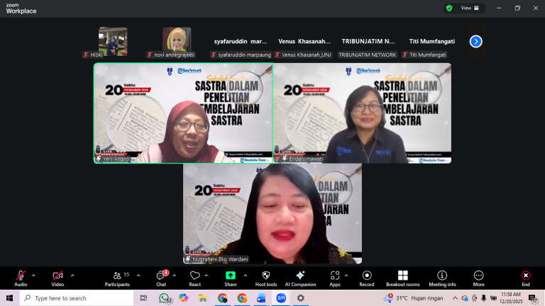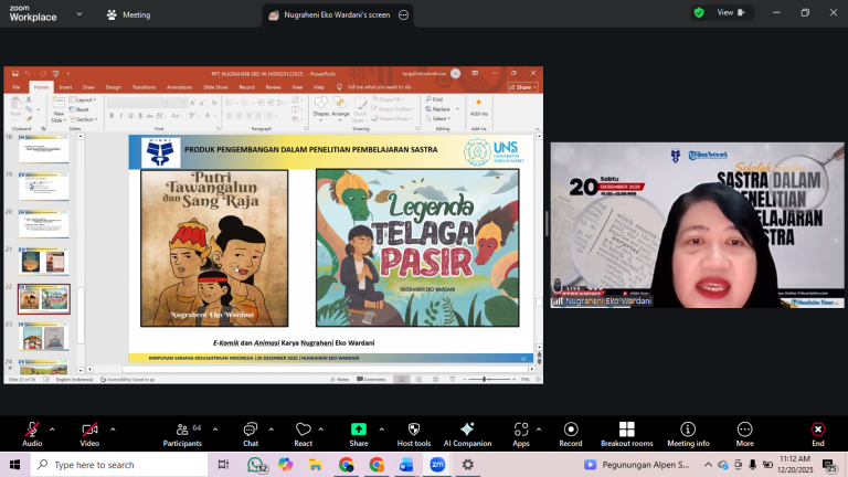ekolah Sastra edisi pamungkas ini menghadirkan Prof. Dr. Nugraheni Eko Wardani, M.Hum., Dewan Pakar HISKI Komisariat Universitas Sebelas Maret (UNS) Surakarta, sebagai narasumber utama. Acara dipandu oleh Dr. Endah Imawati, M.Pd., yang bertindak sebagai moderator. Dalam pengantarnya, Dr. Endah Imawati menyampaikan bahwa pertemuan ini memiliki makna strategis karena menjadi penutup rangkaian Sekolah Sastra HISKI tahun 2025. Ia menegaskan bahwa forum Sekolah Sastra merupakan ruang akademik yang penting untuk mempertemukan gagasan-gagasan mutakhir, khususnya dalam pengembangan penelitian dan pembelajaran sastra di Indonesia.